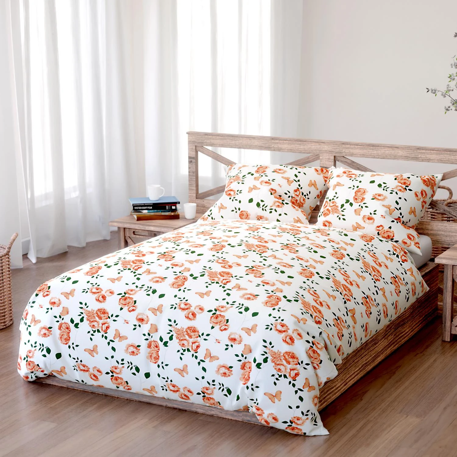 Pościel bawełniana CALMIA 200x220 biała czerwona motyw kwiatowy
