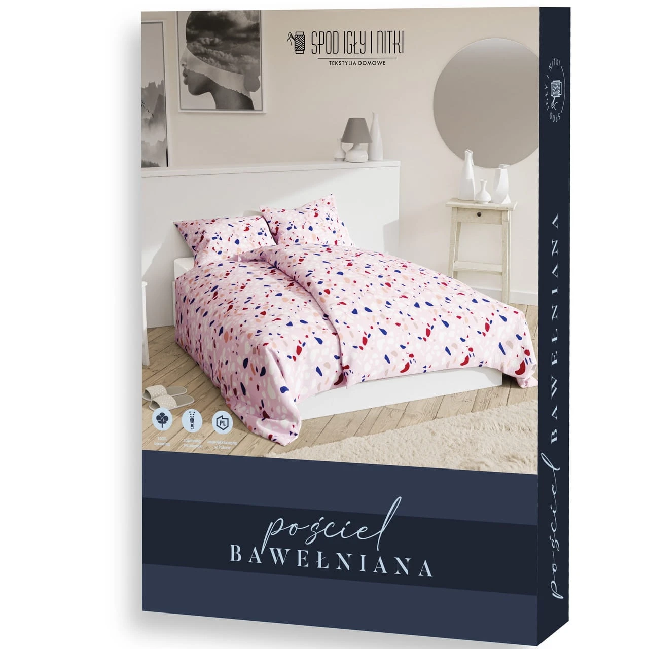 Pościel jest łatwa w pielęgnacji – wystarczy prać ją na lewej stronie w temperaturze do 40°C, z zasuniętymi zamkami. Można ją suszyć w suszarce i prasować w temperaturze do 150°C. Produkt zapakowany jest w estetyczny worek celofanowy, co czyni go także doskonałym pomysłem na prezent.