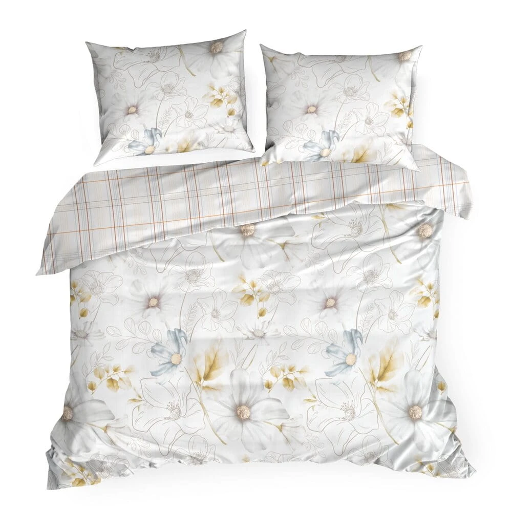 Tkanina pościeli jest przyjemna w dotyku, wykonana z wysokiej jakości materiału, co zapewnia miękkość oraz lekki połysk. Dzięki temu materiał jest nie tylko komfortowy, ale także przewiewny, co idealnie sprawdza się zarówno latem, jak i zimą. Pościel LEA z motywem kwiatów i kratki to doskonały wybór do sypialni, w której liczy się relaksujący, naturalny klimat, wprowadzający w dobry nastrój na każdy dzień.