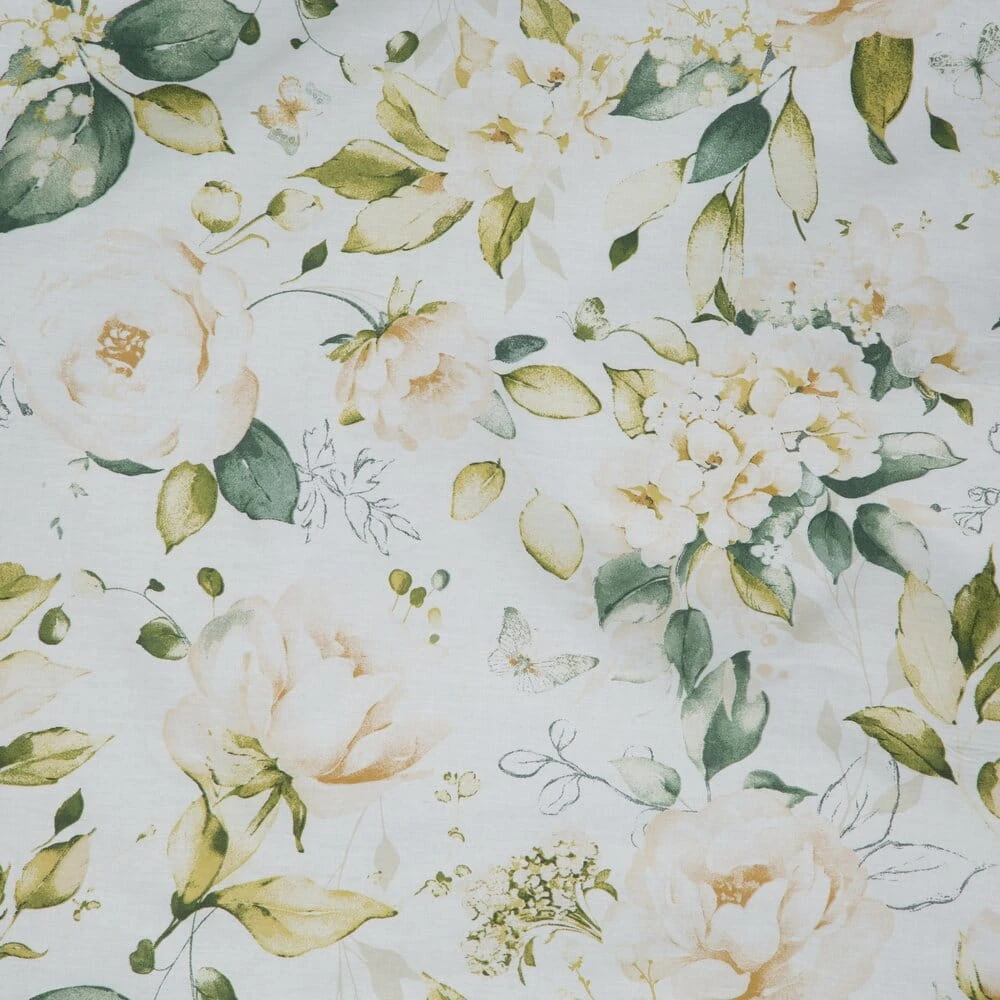 Pościel bawełniana SONIA 200x220 Eurofirany biała zielona kremowa kwitnący ogród kwiaty
