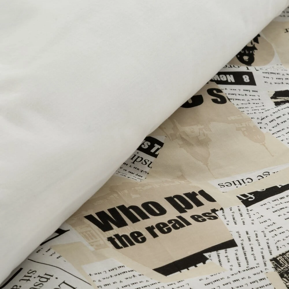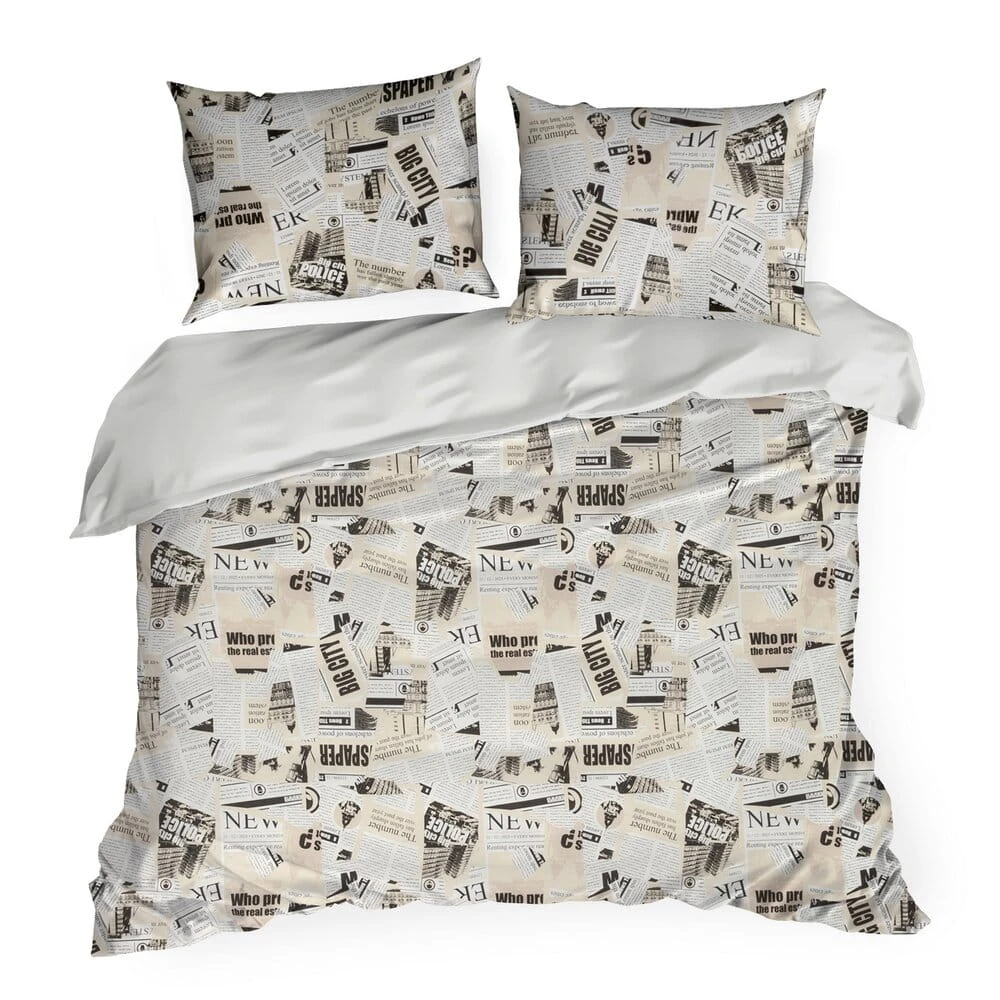 Dwustronny komplet pościeli SONIA we wzór gazety wpisze się idealnie w industrialne i loftowe wnętrza. Sprawdzi się też w męskiej sypialni. Ten komplet to świetny pomysł na prezent "dla Niego", a także z okazji parapetówki.