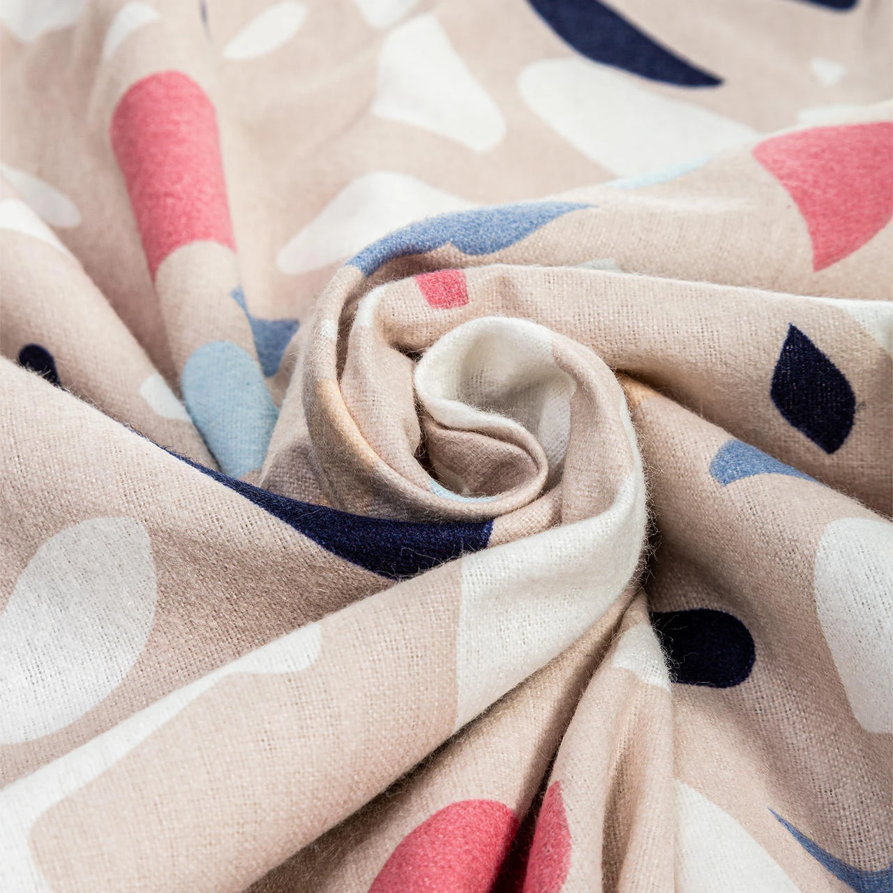 Wielokolorowe płytki lastrykowe na beżowym tle nadają pościeli flanelowej LASTRYKO niepowtarzalny wygląd, który doskonale komponuje się z różnymi stylami wnętrzarskimi.