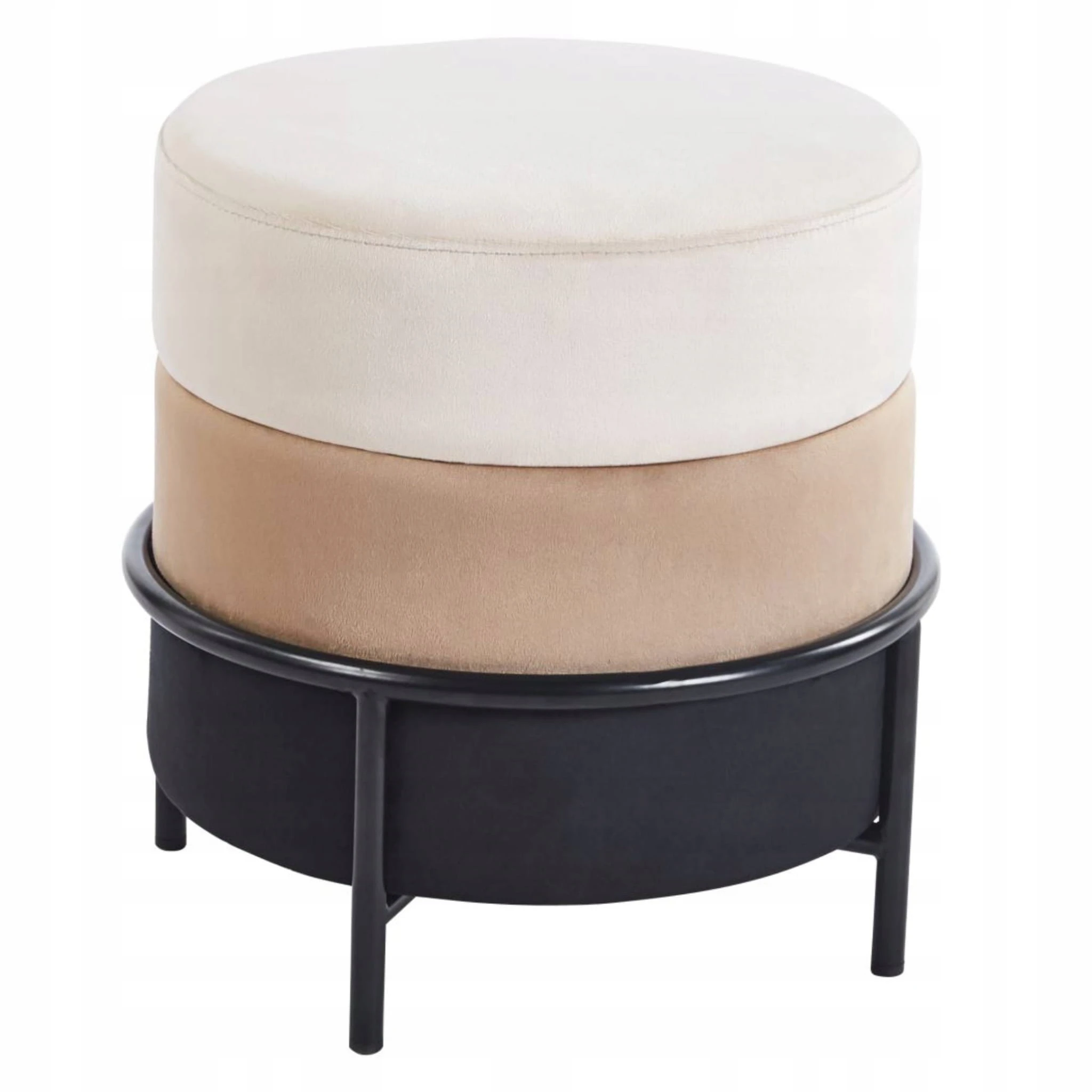 ⭐Pufa BEŻ/CAPPUCCINO/CZARNY glamour okrągła siedzisko