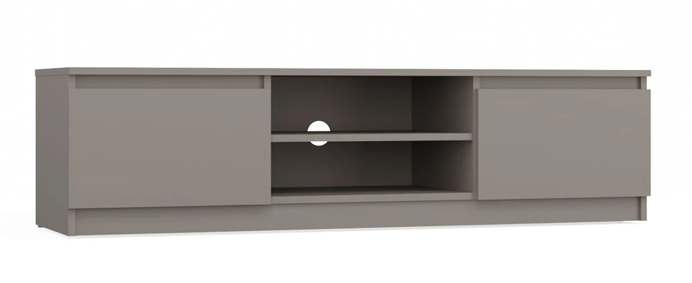 - Otwarta półka pozwala na wygodne ustawienie sprzętu RTV, a umieszczony w jej plecach otwór ułatwia dyskretny montaż okablowania.