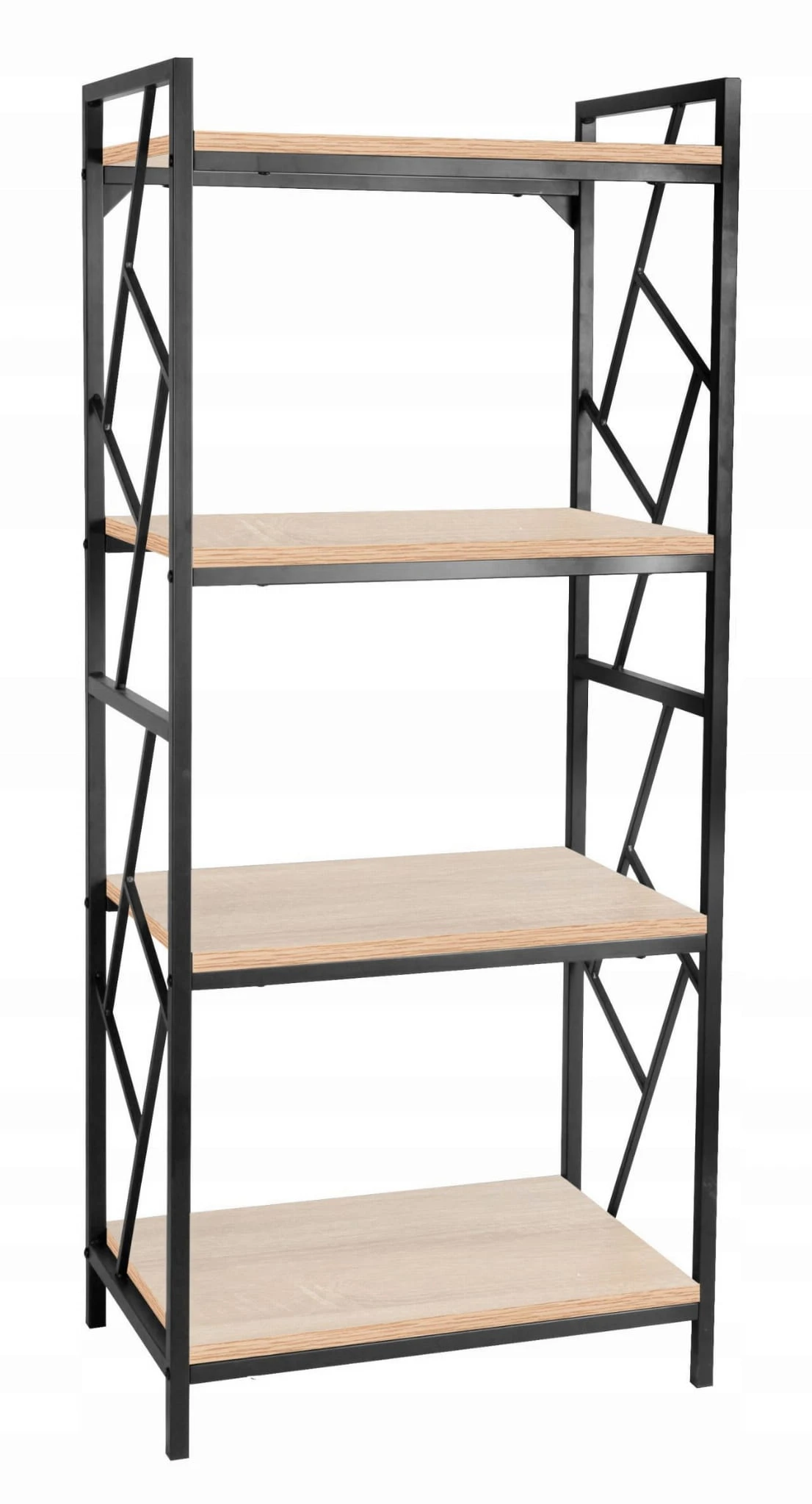 Regał MINIMALISTYCZNY Dąb SONOMA 4 Półki CZARNY Metalowy STELAŻ Furnitex
