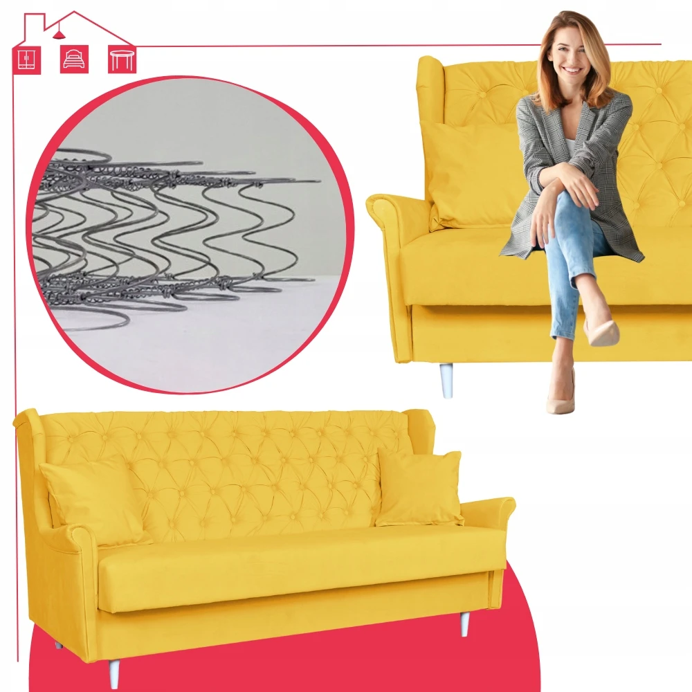 - Dodatkowe funkcje wersalki: funkcja spania, podłokietniki, pojemnik na pościel