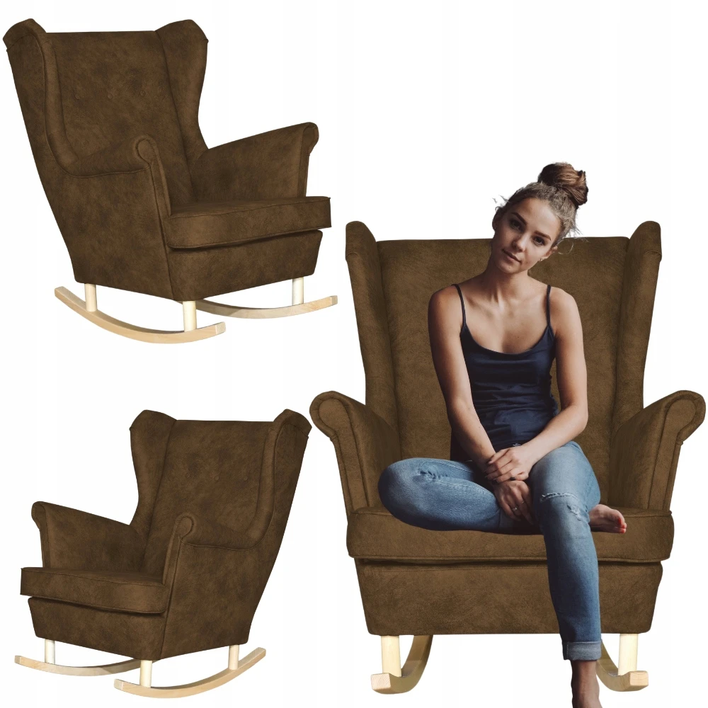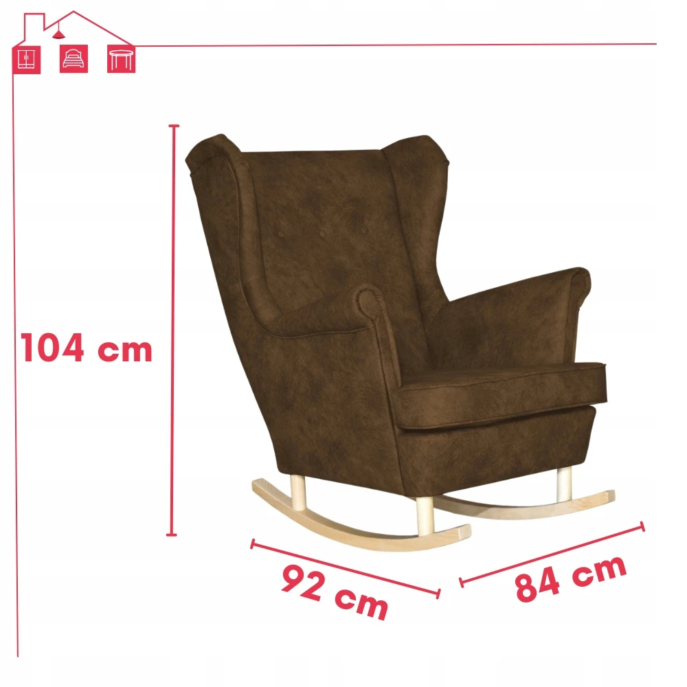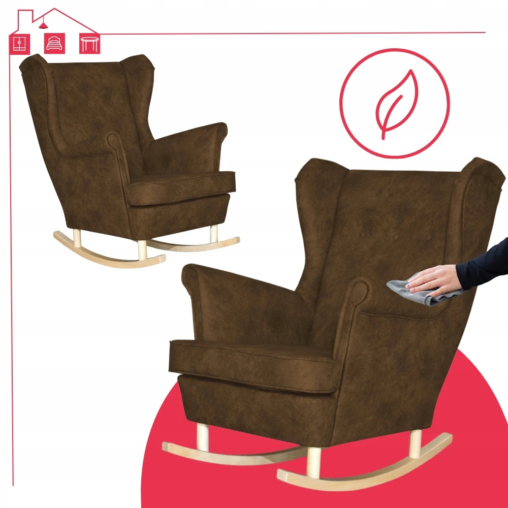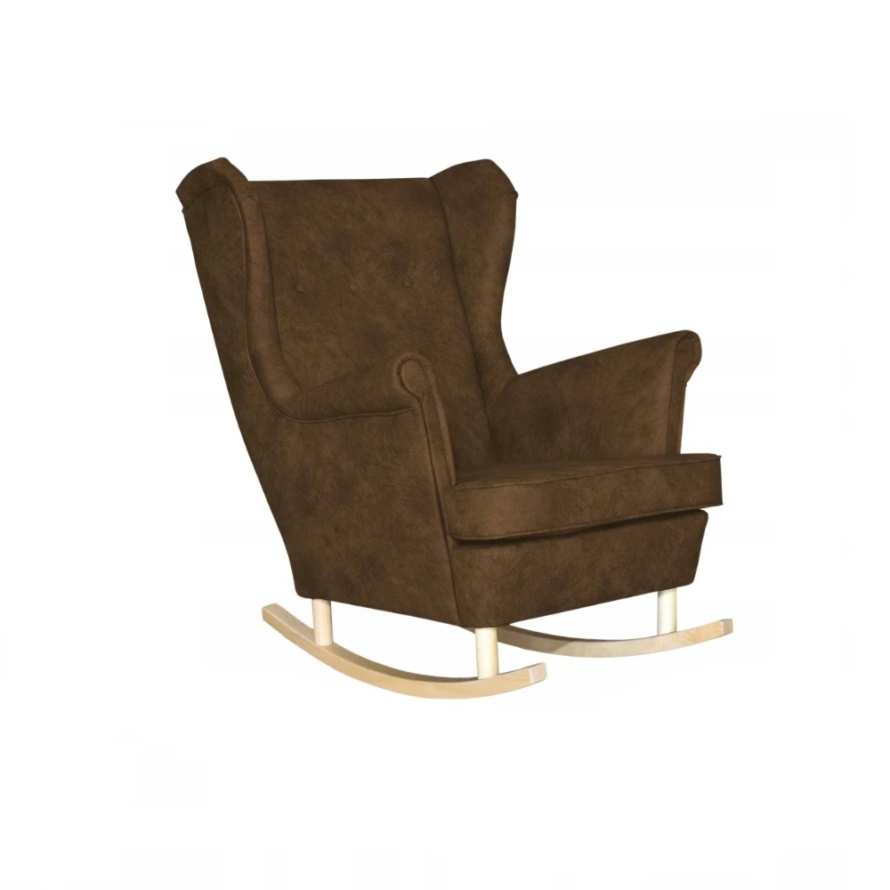 Skandynawski bujany fotel uszak eko skóra Ari JASNOBRĄZOWY Family Meble
