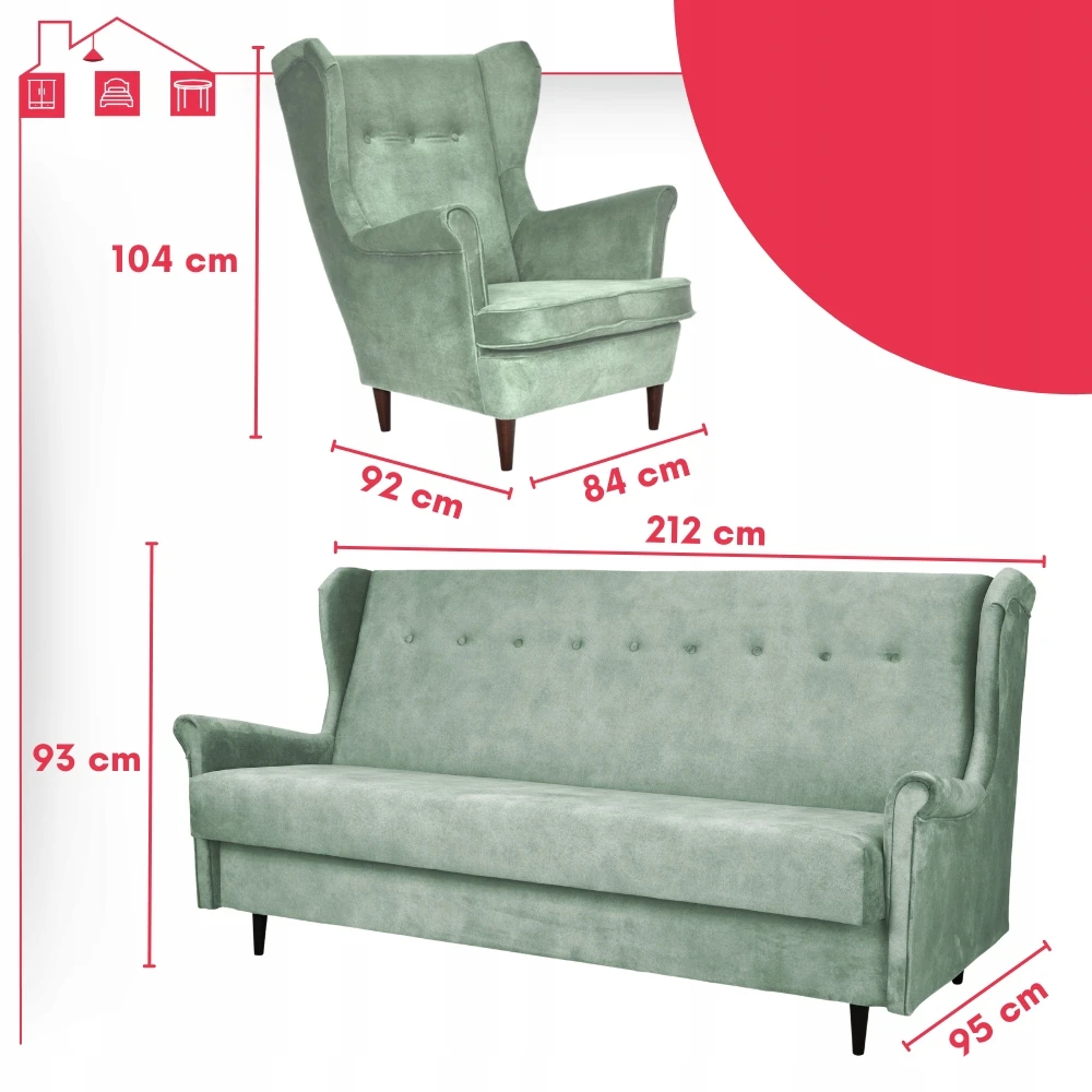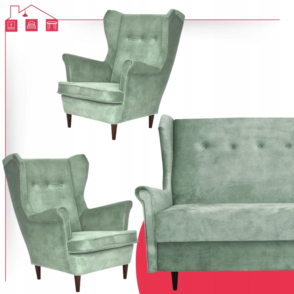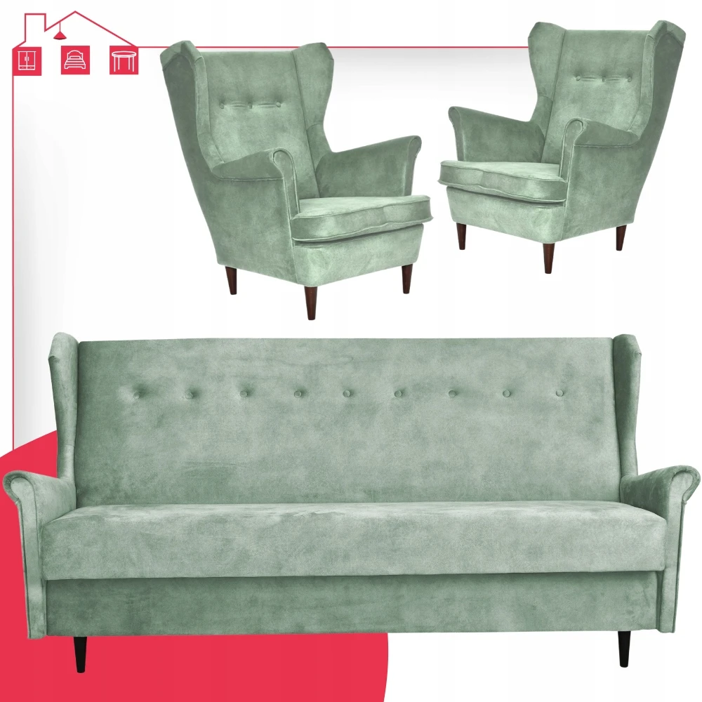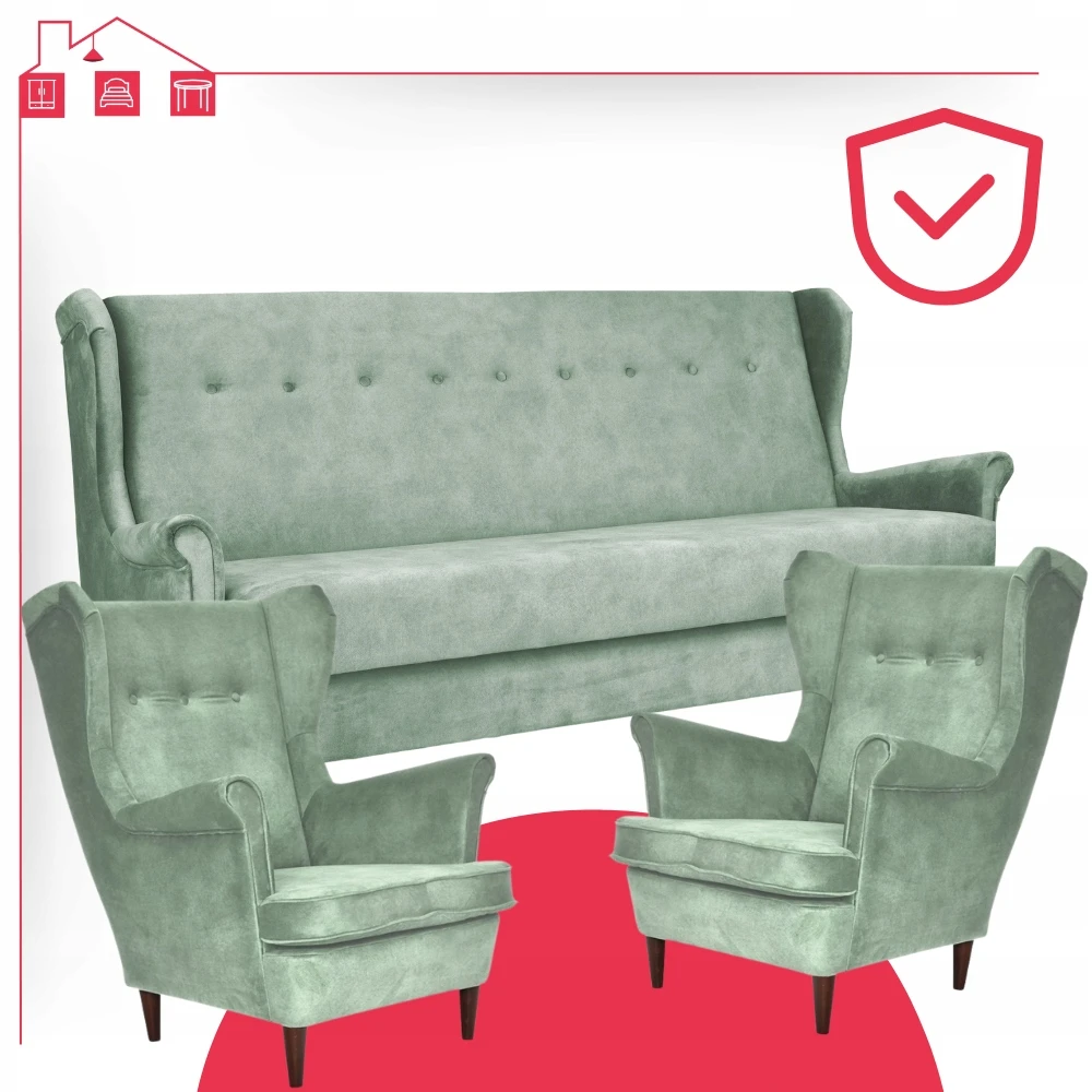 - Typ: zestaw wersalka uszak + 2 fotele uszak