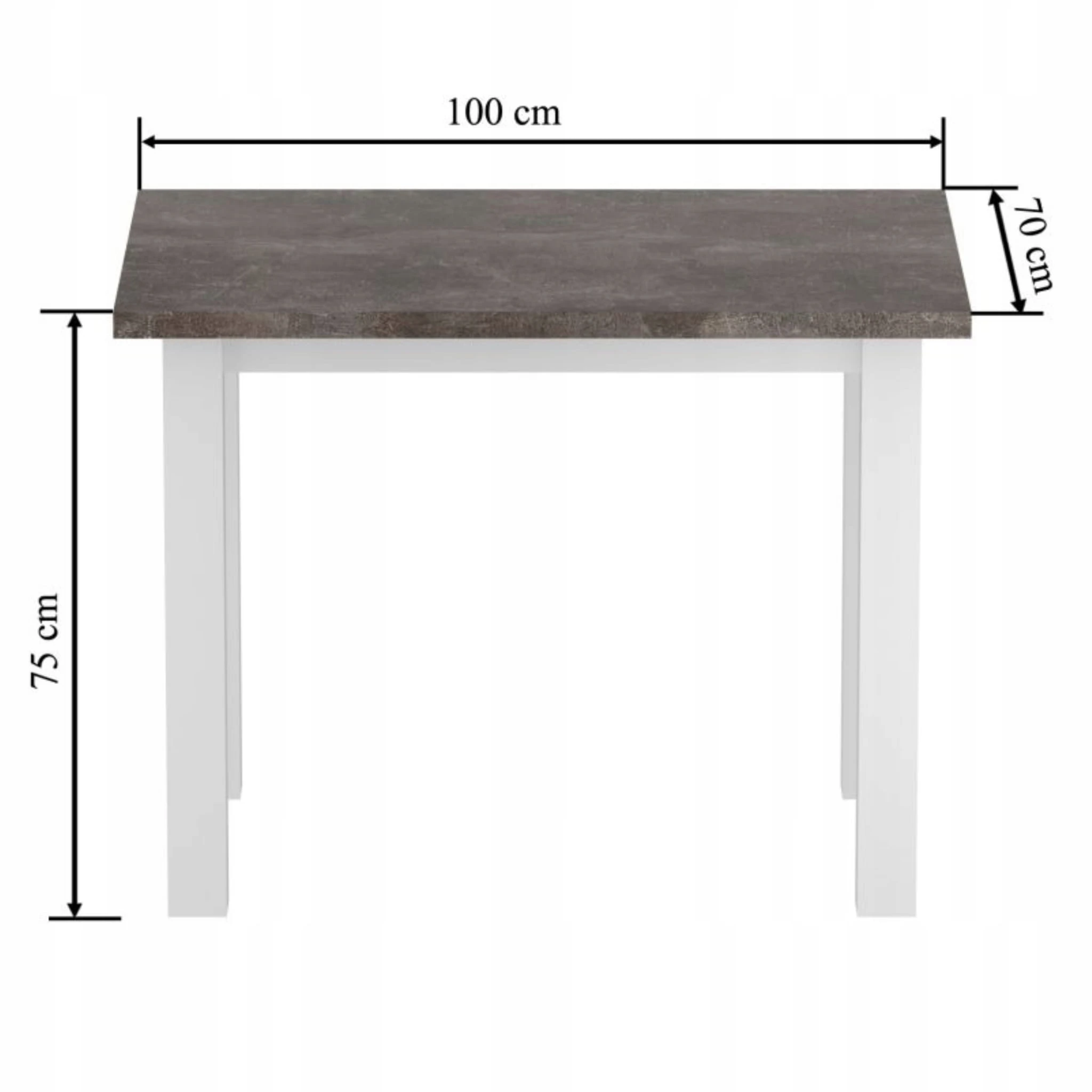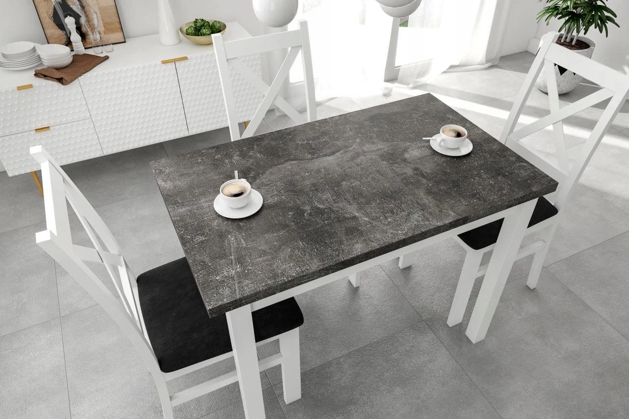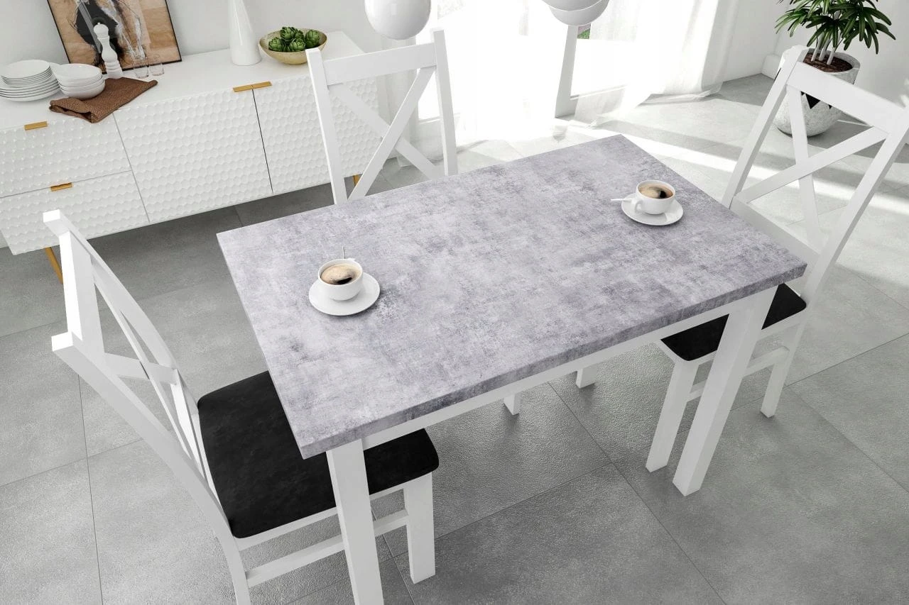 Stół Kuchenny BETONOWY z BIAŁYMI NOGAMI Drewniany 100x70cm Furnitex