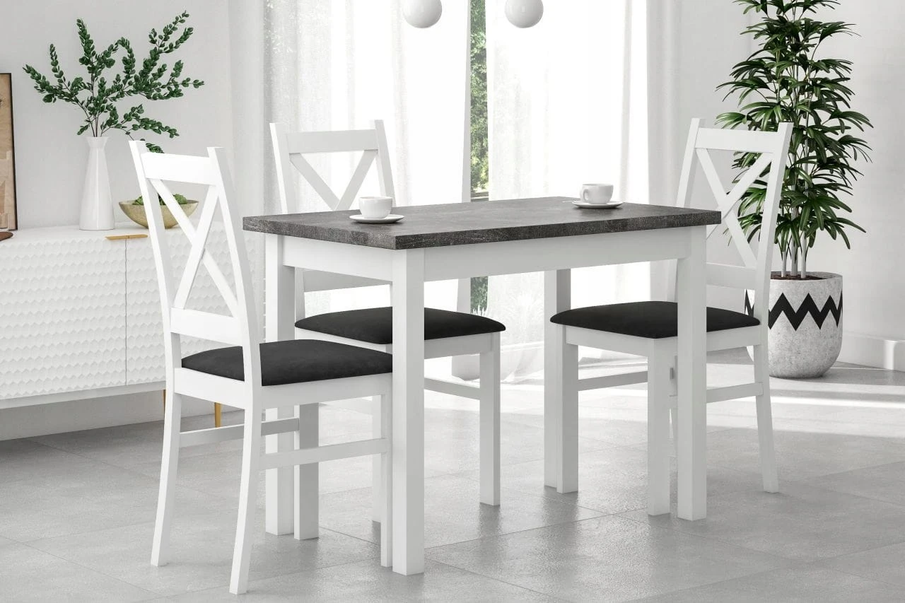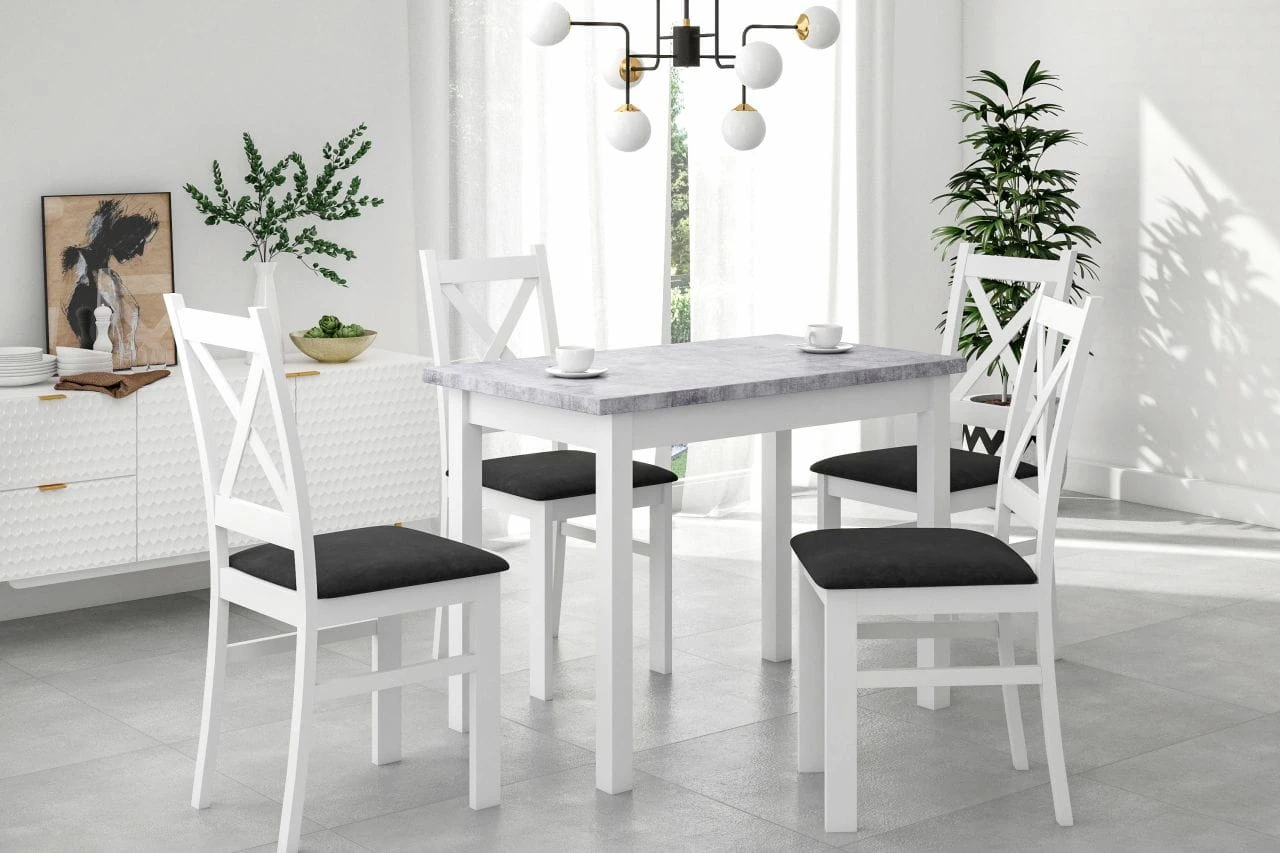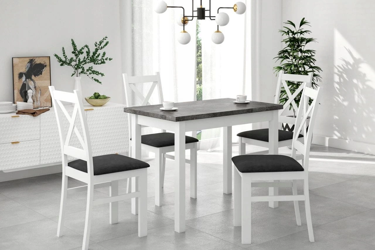 Stół kuchenny MONTE to kwintesencja minimalizmu – połączenie szarości z kolorem białym tworzy uniwersalną kompozycję, która wpasuje się w większość wnętrz zastosowanie w małych kuchniach i jadalniach.