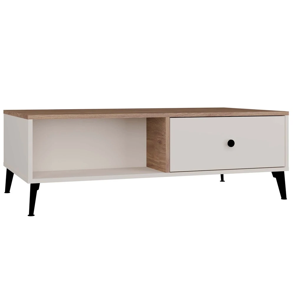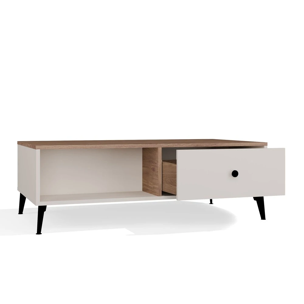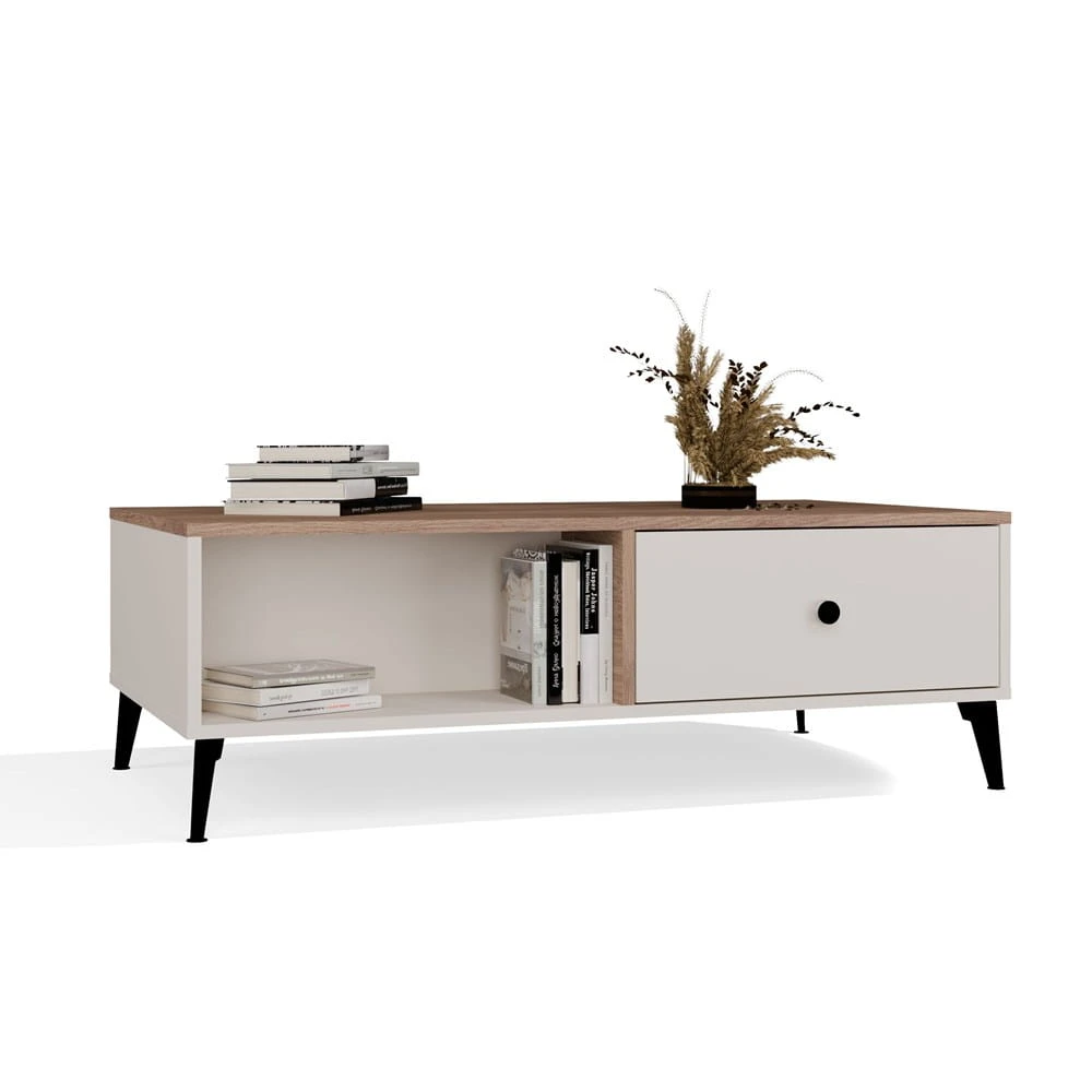 Stolik Kawowy Ława POINT 2S 110 Kaszmir Beż Dąb Castello 2 Szuflady Do Salonu