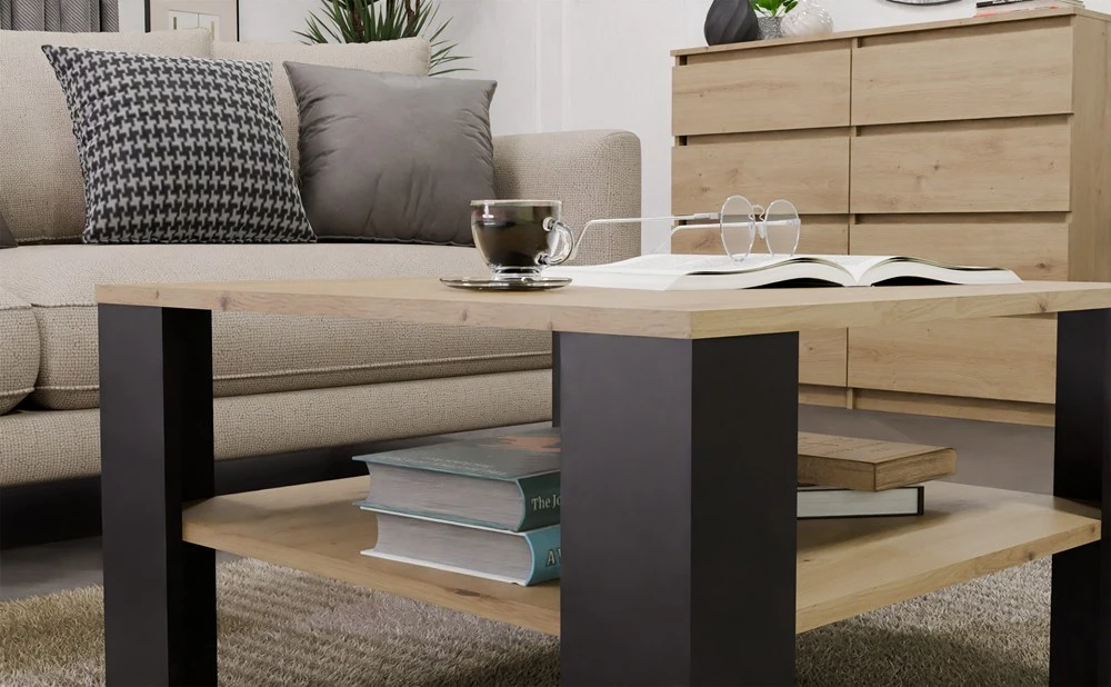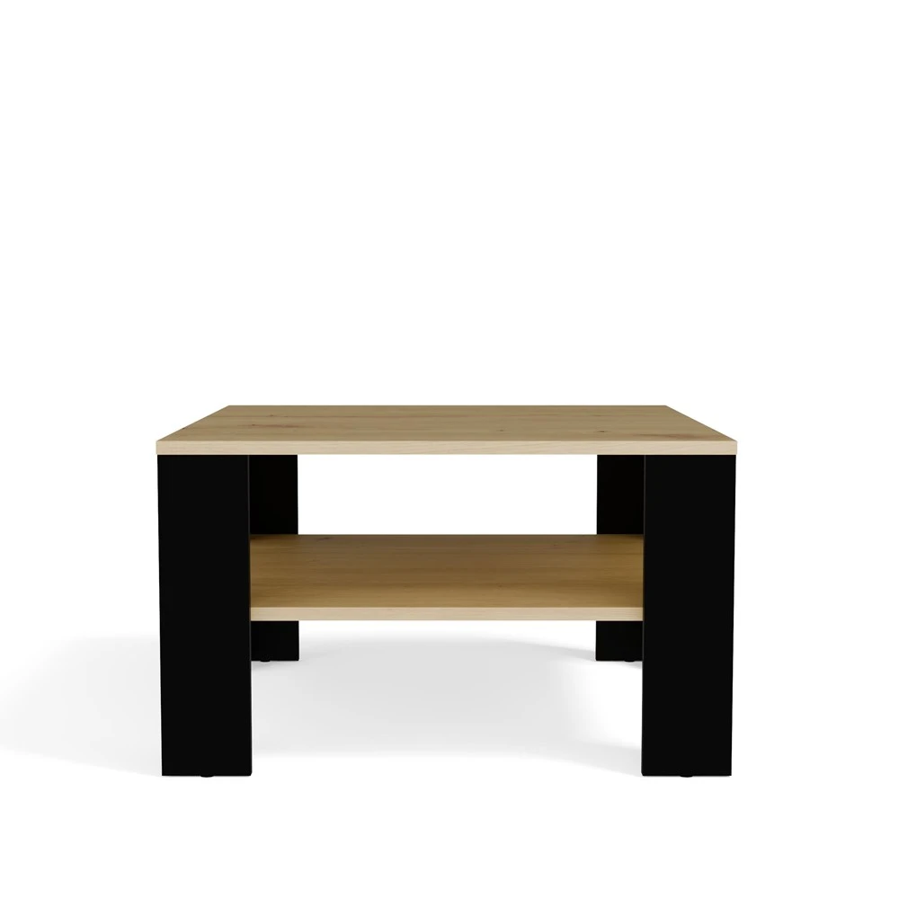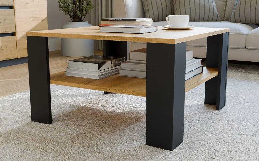 Stolik Kawowy Z Półką Pod Blatem SQUARE DĄB ARTISAN CZARNY Ława Do Salonu Pokoju