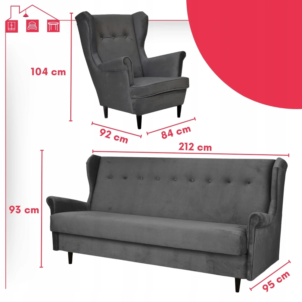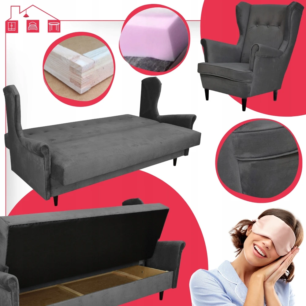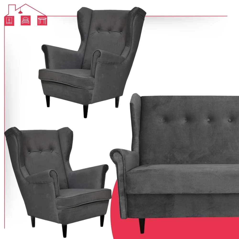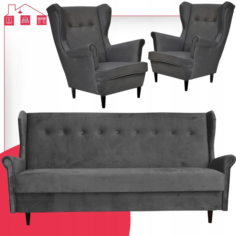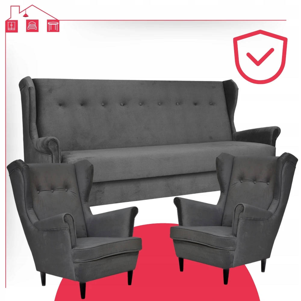 - Typ: zestaw wersalka uszak + 2 fotele uszak