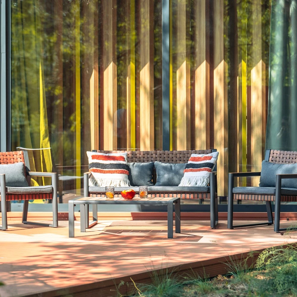 Nowoczesny, a zarazem przytulny – zestaw ogrodowy TEXAS to świetny wybór na taras, ogród lub przestronny balkon. Dzięki lekkiej aluminiowej konstrukcji i odpornym na warunki atmosferyczne materiałom, ten komplet wypoczynkowy zachwyca nie tylko designem, ale i trwałością. Poduszki na siedzisku i oparciu zapewniają komfort podczas relaksu z kawą, książką lub w gronie bliskich.