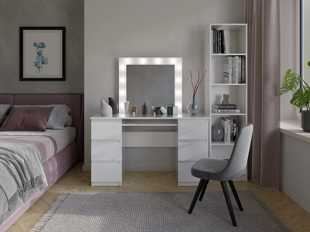 - Toaletka służy zarówno jako miejsce do przygotowania makijażu i innych zabiegów pielęgnacyjnych, jak i funkcjonalne biurko.