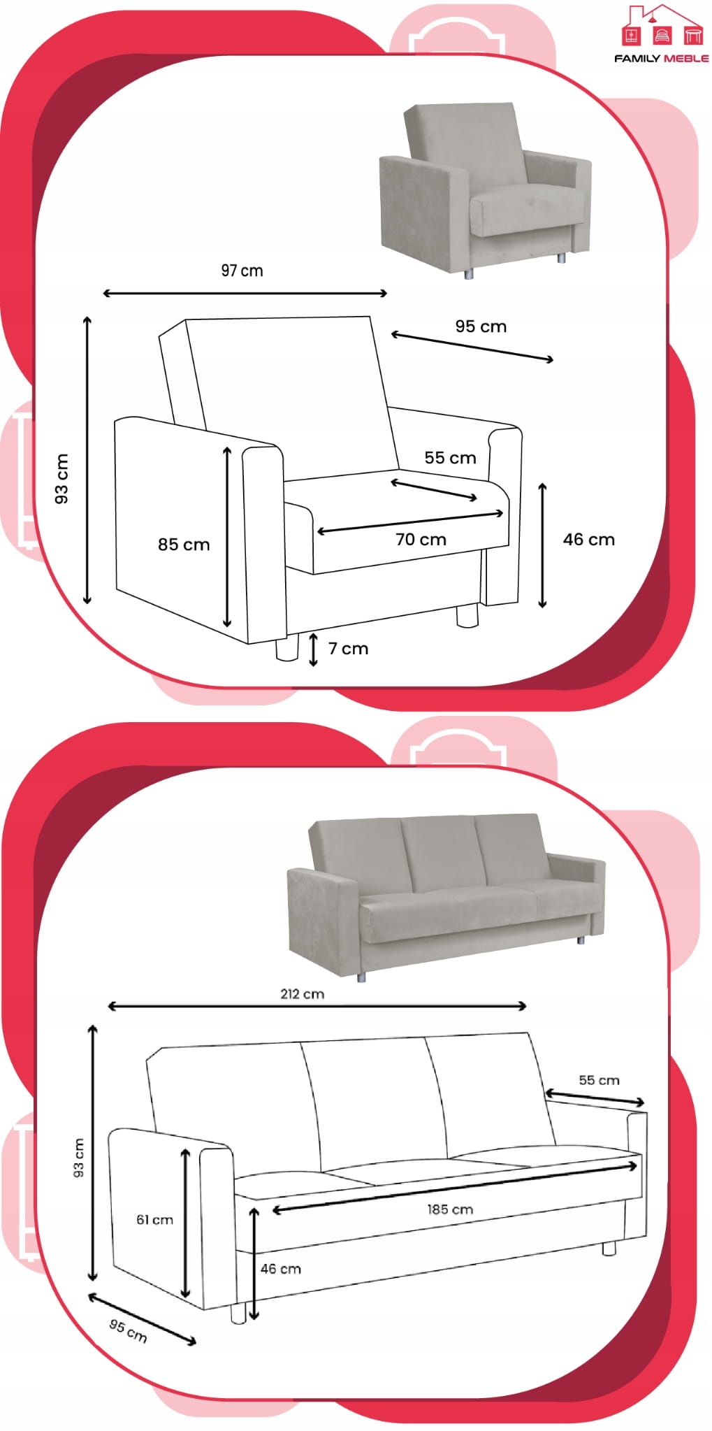 • Zawartość zestawu: 1 x wersalka, 2 x fotel